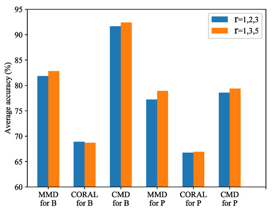 To measure the discrepancy between the source and target feature representations, a certain criterion is chosen as a loss function. To achieve the purpose of domain adaptation, we minimize and the classification error of source domain simultaneously. Thus, the optimization objective of domain adaptation is expressed as [41]: