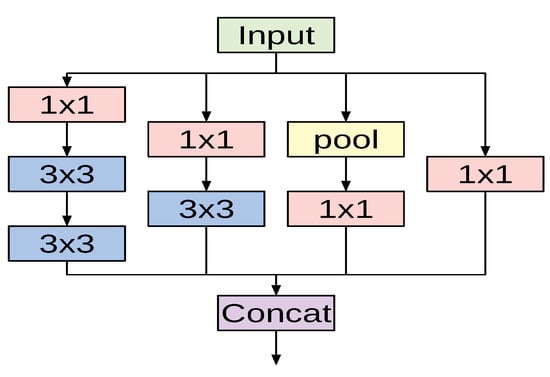 - Szegedy, C.; Vanhoucke, V.; Ioffe, S.; Shlens, J.; Wojna, Z. Rethinking the inception architecture for computer vision. In Proceedings of the IEEE Conference on Computer Vision and Pattern Recognition (CVPR), Las Vegas, NV, USA, 26 June–1 July 2016; pp. 2818–2826. [Google Scholar]