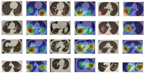 Examples of CT images taken from these two publications [61,62]. The CT images were correctly classified as COVID-19 cases, and the abnormal regions are accurately detected as in the localization maps.