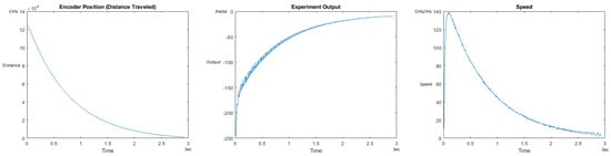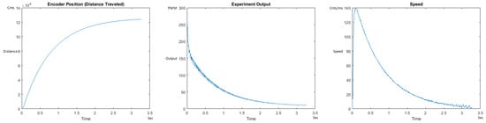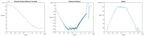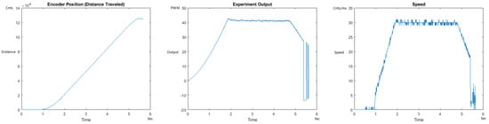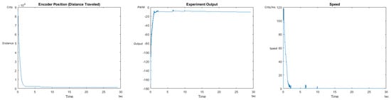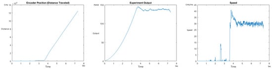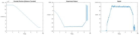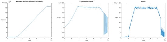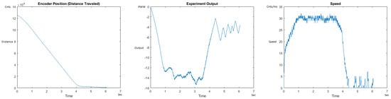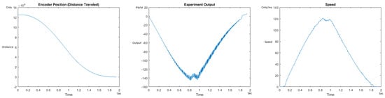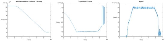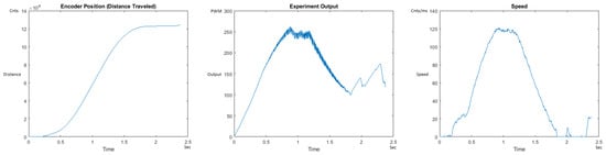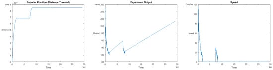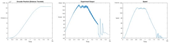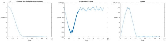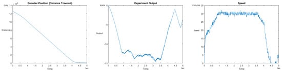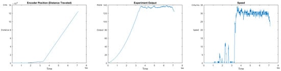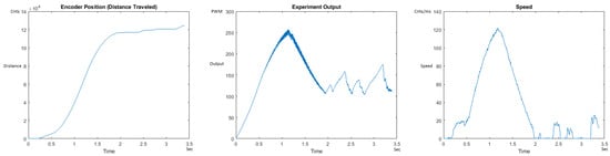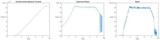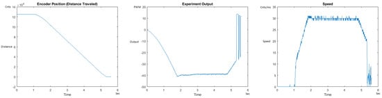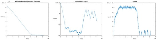 Encoder position, output and speed plots for basic PID UP Operation—1 Kg.