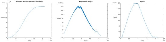 Overall, from the graphical responses, it is clearly observed that in all runs with PID++, the desired distance traveled (0–125,000 cnts) in the UP direction and (125,000–0 cnts) in the DOWN direction, and the user specified with the desired acceleration/deceleration were correctly achieved from the plateau and trapezoidal profiles for different weight loads.