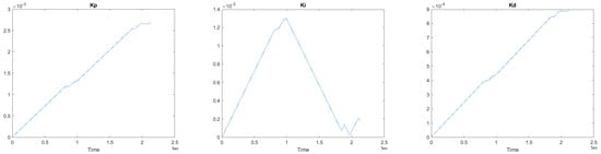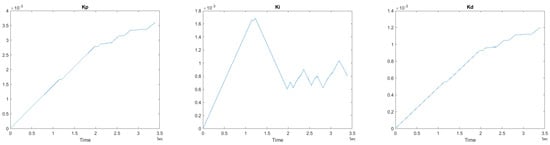 It is clearly seen that the , and parameters of PID++ do not remain constant and periodically change to adjust the motion to the desired trapezoidal profile operation.