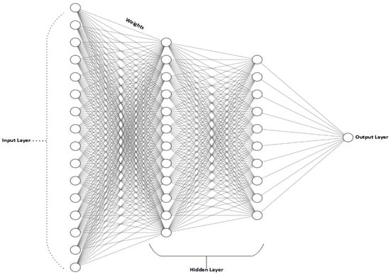 - Artificial neural network (ANN) is a part of artificial intelligence. The concept of ANN is not new and is inspired by the way human biological neurons work in the human brain. ANNs are quite helpful in giving optimal solutions to complex problems that cannot be analytically defined. ANN consists of fundamental processing units called neurons, along with weighted connections between them. ANN can be defined as a large, parallel dispersed data-processing network which consists of simple entities called neurons. It has a natural propensity to store experiential information which is then used, analogously to the way the brain collects and holds information [45]. During the learning process, the neural network acquires information and preserves it through the intensity of neuronal contact [46]. Neural networks are designed such that problem-solving is possible without the need for experts and without programming. In unclear data, they often search for patterns and connections and are specifically tailored for complex problems where there are no classical mathematical and conventional procedures or formal underlying theories. ANN differs from statistical and algorithmic techniques such as regression sampling in that ANN learns from examples to give generalized solutions [47,48,49,50,51,52,53,54].ANN consists of multiple layers, and, in every layer, there exist nonlinear processing and fundamental computation units called neurons that perform tasks such as feature extraction. The output from every layer is fed as input into the subsequent layer. ANN-based models work by collecting their input from various neurons present at the input layer, and they are designed to sense data from the outside world just as humans do, passing this information collected from different input neurons to further neurons present in another layer of hierarchy termed the hidden layer. The information is then processed at this layer and is passed to the output layer. A typical ANN structure is shown in Figure 2.