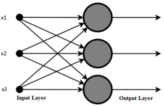 - Feed-forward neural network (FFNN) is the simplest and most basic type of neural network and may or may not feature a hidden layer. Information in FFNN flows in only one direction (forward propagation), i.e., from the input layer to the processing hidden layer to the output layer [57,58]. Figure 3 shows the basic structure of an FFNN.
