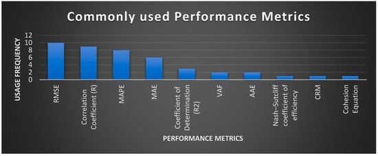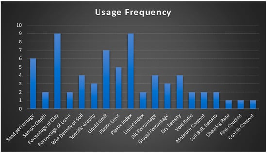 Similarly, for the prediction of soil shear strength, the authors in [68] made use of a functional network. The database for training the proposed predictive model was taken from [69], which consisted of a total of 131 soil samples from landslide areas, slope failure areas, volcanic eruption areas, etc. Input parameters that were considered for soil shear-strength estimation included liquid limit, plasticity index, and clay fraction. In order to compute the performance and efficiency of the proposed functional network-based predictive model, the authors compared their model with SVM- and ANN-based models using performance metrics such as the Nash–Sutcliffe coefficient of efficiency, correlation coefficient, maximum average error (MAE), RMSE, and absolute average error (AAE). According to the results, it was observed that the author’s proposed functional network-based model performed better than the ANN in terms of the Nash–Sutcliffe coefficient of efficiency and correlation coefficient. However, its performance was not found to be better in comparison to the SVM-based model.