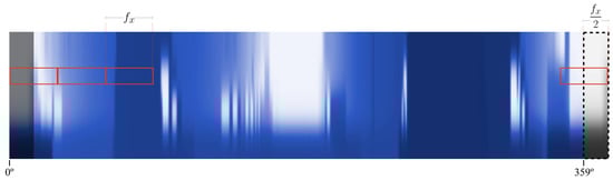 The approach adopted for this problem has been the transformation of the preprocessing into a depth map, that is, an image of a single channel where each “pixel” corresponds to the minimum distance detected by all the LiDAR beams crossing it. Figure 1 shows an example of such a representation. In our specific case, the generated depth map is 360 × 6 pixels, where 360 is the horizontal resolution and represents the total circumference in one-degree resolution, and 6 is the vertical resolution and represents the arc from −7 to 3 degrees (both included) in 2-degree resolution.