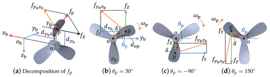 Proposition 2. If one piece of the propeller blades has become faulty, the time integrations of elements from , except and , in a rotation cycle equal 0 simultaneously under a constant rotation speed.