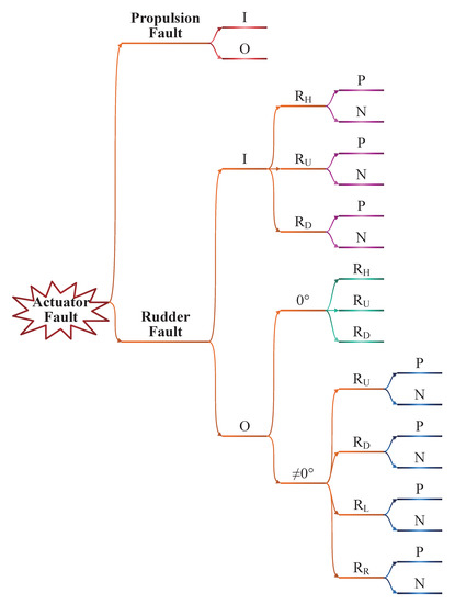Figure 4 is developed focusing on different faulty regions. Possible faulty cases that can change the motion of a given AUV are divided into 19 exclusive categories qualitatively, even though similar fault features exist as given in