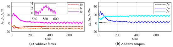Proposition 1. If any propulsion fault occurs inside the hull and changes the propeller rotation speed, the generated forces and torques are changed; however, the additive forces and torques are all 0 when the desired forces and torques from are designed, based on the actual rotation speed of the propeller.