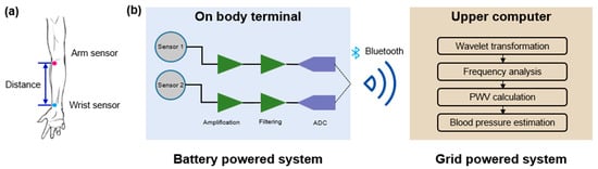 - Chen, W.; Kobayashi, T.; Ichikawa, S.; Takeuchi, Y.; Togawa, T. Continuous estimation of systolic blood pressure using the pulse arrival time and intermittent calibration. Med. Biol. Eng. Comput. 2000, 38, 569–574. [Google Scholar] [CrossRef]