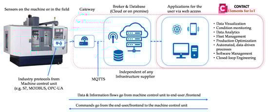 - IoT Platform for Digital Business Models|CONTACT Software. Available online: https://www.contact-software.com/en/products/iot-platform-for-digital-business-models/?fbclid=IwAR0oYDd4qHpCd0BEZaGrLHEAQGYoQ2BhBmDzbF35-cyM6QrNHAkziWDC8yo (accessed on 22 December 2020).