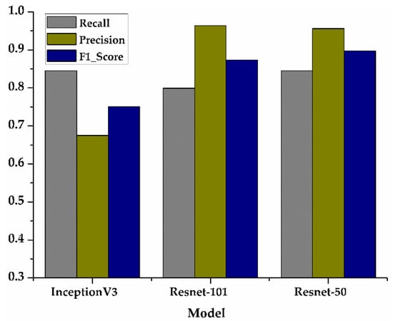 We used two other transfer learning models for comparative analysis, including InceptionV3 network and Resnet-101 network with pre-trained models (the pre-trained models are all from ImageNet). As a classic network model, InceptionV3 has been applied to classification tasks in many works. The only difference between Resnet-101 and Resnet-50 is the number of their layers.