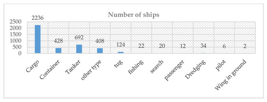 The statistical results of the types of ships in the GRD mode of the dataset.