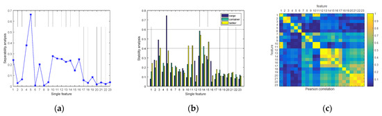 After feature extraction and analysis, the separability, stability, and Pearson correlation coefficient analysis result are shown in Figure 4.