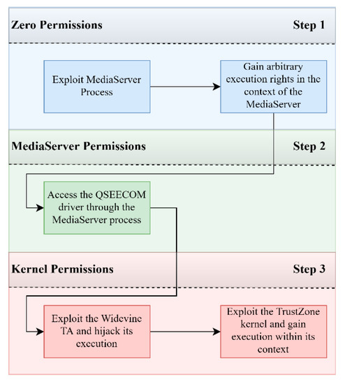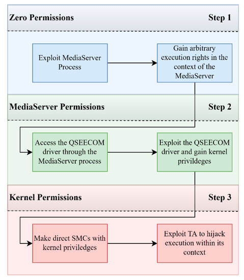 - Beniamini, G. QSEE Privilege Escalation Vulnerability and Exploit (CVE-2015-6639), May 2016. Available online: http://bits-please.blogspot.gr/2016/05/qsee-privilege-escalation-vulnerability.html (accessed on 4 January 2021).