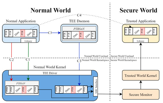 - Brasser, F.; Gens, D.; Jauernig, P.; Sadeghi, A.-R.; Stapf, E. SANCTUARY: ARMing TrustZone with User-space Enclaves. In Proceedings of the NDSS, San Diego, CA, USA, 24–27 February 2019. [Google Scholar]