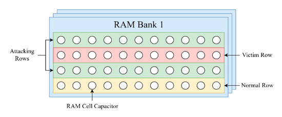 - Kim, Y.; Daly, R.; Kim, J.; Fallin, C.; Lee, J.H.; Lee, D.; Wilkerson, C.; Lai, K.; Mutlu, O. Flipping bits in memory without accessing them: An experimental study of DRAM disturbance errors. In ACM SIGARCH Computer Architecture News; IEEE Press: Piscataway, NJ, USA, 2014; pp. 361–372. [Google Scholar]