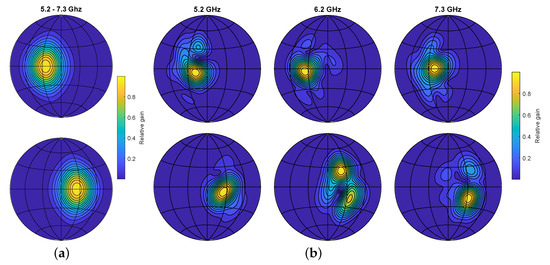 Here, and are 3D matrices with a dimension for the azimuth angle, elevation angle, and frequency. In this matrix we place 10 random complex coefficients at random indices below 5. Taking the inverse Fourier transform then generates a smoothly fluctuating spatial pattern. Multiplying the original lobed radiation pattern with this fluctuating mask gives the desired spatiospectral variance, as shown in Figure 9b.