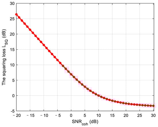 where represents the number of non-coherent accumulations. is squaring loss, which exists because the mean of the output noise is not equal to zero due to the squaring operation. Squaring loss can be expressed as follows: