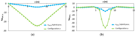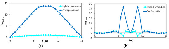 As expected, the results are even more accurate than in the previous example because the maximum curvature is input from the station points. In Figure 15, the comparison of the percentage differences with respect to that obtained considering the configuration “d” without the hybrid procedure is reported.