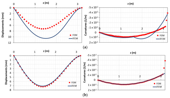 Figure 19 reports the comparison between the displacements and curvatures diagrams, obtained with FEM and iFEM method, for the configurations “a” and “b”.