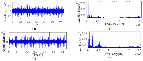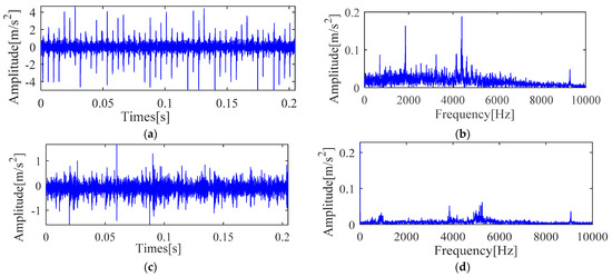 Figure 4 shows the time-domain and frequency-domain analysis results of the original outer race signal, respectively. It is seen from Figure 4 that these waveforms cannot directly obtain the information related to the outer race fault. Further analysis is required to determine the fault characteristic frequency and other details. Therefore, IMOMEDA-TKEO, MOMEDA-TKEO and the FK methods are proposed to complete subsequent analysis.