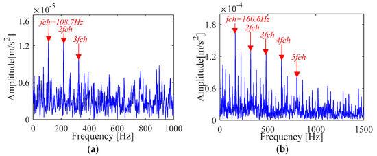 The xcov(t) is demodulated by the TKEO and the corresponding spectrum is shown in Figure 12 where the result shows the characteristic frequency (108.4 Hz), with its frequency doubling, approaches BPFO (2~9BPFO). Further, it is inferred from the original signal that there exists an outer ring fault.