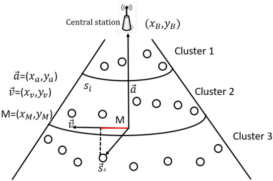 - For each node in the cluster, central station computes the vector , which connects the sensor node with the midpoint of the network area.