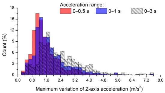 4.1. Histogram of the Maximum Variation of Z-Axis Acceleration According to the Time Needed to Acquire Acceleration Data