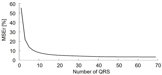 Increasing the number of QRS complexes resulted in an exponential reduction of the MSEr up to values of MSEr = 4%. The inclusion of more than 50 QRS complexes resulted in an improvement of the performance of the algorithm in terms of an MSEr lower than the 1%. For this reason, the present work proposes to use 50 QRS complexes to apply the SVD.