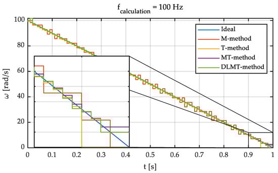 Figure 7. Simulation with different methods. dω/dt = –100 rad/s2. ω0 = 100 rad/s.