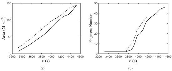 Figure 13, and the fragment number of the magnetic polarities in Cases B and B’, respectively.
