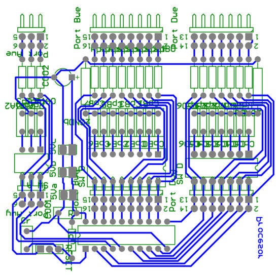 The electronic commutator system used to power the BLDC motor basically consists of the power electronics and the electronic part (Figure 9) responsible for driving the power transistors based on the indications of the shaft position sensor. In addition, Figure 10 shows the design of the printed circuit board of the PCB system realized during the research.