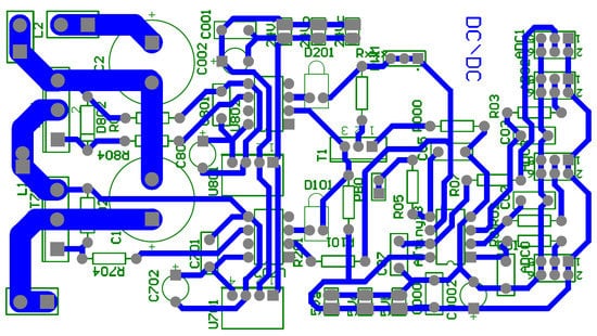 The realizations of a DC/DC converter designed in the research is presented in Figure 13. PCB design made as part of the research work is presented in Figure 14.