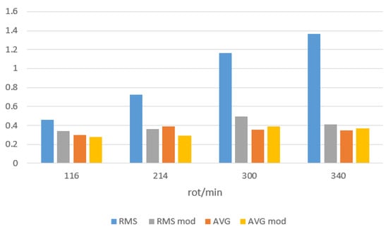 The current analysis was performed within the feed cycle. The results obtained in this way are presented in Table 1—idling and in Table 2—under load. Measurements were made for two directions of rotation.