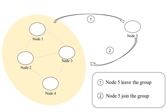 However, as shown in Figure 13, if the boundary is small and the speed of the nodes high, the probability of a node entering the synchronization group also increases. On the other hand, if the speed is low, the probability of a node getting out of the synchronization group is decreased, but the probability of a node, which left the synchronization group, re-entering the synchronization group decreases, resulting in the decrease in the synchronization performance of the entire network.