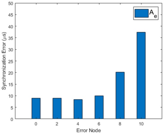 Naturally, a time synchronization algorithm needs to have a fast convergence in achieving consensus among nodes and to exclude malfunctioning nodes from the synchronization process. In order to achieve these goals, the median value of the time information of the nodes is adopted [,], because, in excluding outliers, a median—rather than an average—is a better choice.