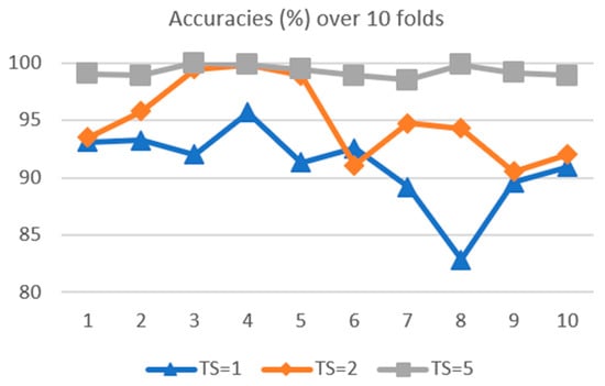 4.5. 10-Fold Validation of the HAR Data Set with the Proposed Network, at TS = 1, 2, and 5