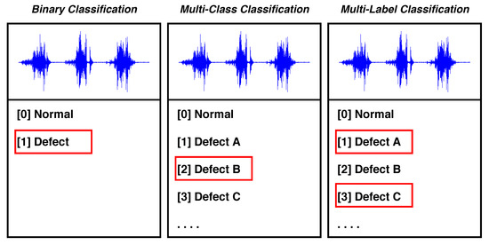 As an instance of supervised learning, classification is a technique to identify data observations according to where they belong on the basis of training data. Classification is primarily divided into three categories: binary, multi-class, and multi-label. Figure 5 exemplifies the types of classification.