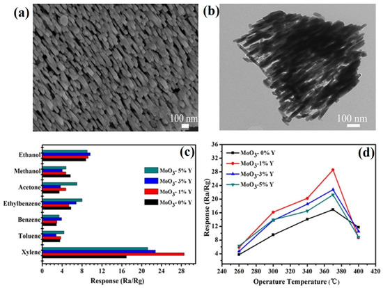 - Qin, H.; Xie, J.; Xu, H.; Li, Y.; Cao, Y. Green solid-state chemical synthesis and excellent xylene-detecting behaviors of Y-doped α-MoO3 nanoarrays. Mater. Res. Bull. 2017, 93, 256–263. [Google Scholar] [CrossRef]