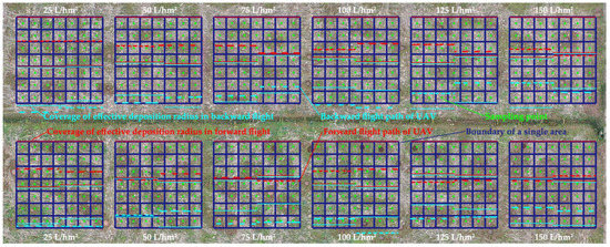 The propeller speed, pitch angle, wind velocity, and droplet diameter play a major role in the distribution characteristics of droplet deposition. In the case of wind, the flight height should be reduced and the droplet diameter should be increased [28]. However, under strong wind, the UAV plant protection operation should be avoided to ensure safety and spray effect. At extreme temperatures, such as greater than 40 C or less than 0 C, spray is easy to evaporate or freeze. If necessary, dissolve additives or increase the flow rate of nozzle, but the best way is to avoid flying [62].