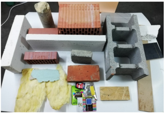The research material used for the measurements was typical building materials used in the construction of buildings in Poland. For the research, the 16 most often used building materials were selected, based on information obtained from architectural offices and companies supplying construction sites (Figure 1).