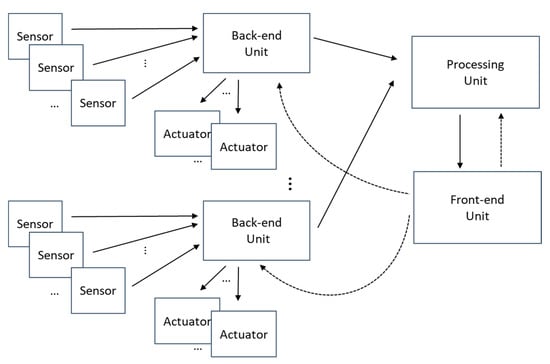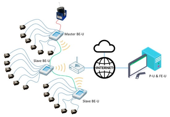 To achieve the proposed requirements, the system architecture that has been selected is shown in Figure 1. It can be observed that the system is formed by the sensors, the adaptation units, called the back-end units (BE-U), the processing unit (P-U) and the control unit, called the Front-end unit (FE-U).