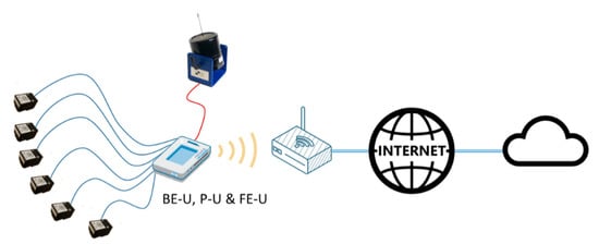 In addition to these solutions based on MEMS sensors, in the SHM world have appeared networks with wireless sensors that are based on the paradigm Wireless Sensors Networks (WSN) []. These wireless architectures send data of reduced size at specific time intervals (synchronous mode) or asynchronously to specific events. These systems are very versatile and require a synchronization system for the time base is common to all sensors. Together with this fact, recently the Internet of Things (IoT) paradigm has burst, making possible the combination of sensors and low-cost acquisition systems, which can use wired and wireless networks [], and this paradigm has also reached the SHM [].