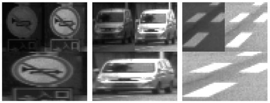 As it was mentioned in the Introduction, the data from the ADAS/ADS cameras needs to be stored for safety reasons, e.g., for an after accident investigation and for developing or testing safety algorithms in the laboratory (SiL or HiL systems) []. Mostly lossless codecs are used as large certainty of object detection is the most important parameter for safety reasons. However, the lossless compression ratio remains low (e.g., for RGB 24 bpp images it does not exceed 3.3 []). In ADAS/ADS applications, compression must be performed in real time by an on-board computer system with limited capacity, which precludes (at least currently) the use of complex compression algorithms, such as deep neural networks (DNN) [,].