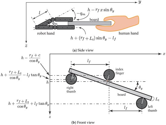 - The reference joint angle of the robot hand was obtained by solving the inverse kinematics of the robot hand based on the position and posture of the board,