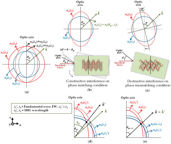 In this study, the phase mismatch can be obtained by considering the refractive index of the ordinary beam (no) as the function of the wavelength of FW and the refractive index of the extraordinary beam (ne) as the function of the angle and wavelength of the SHW, which is mathematically expressed in the following equation [28].