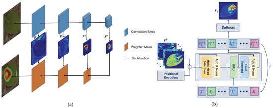 - Locatello, F.; Weissenborn, D.; Unterthiner, T.; Mahendran, A.; Heigold, G.; Uszkoreit, J.; Dosovitskiy, A.; Kipf, T. Object-centric learning with slot attention. arXiv 2020, arXiv:2006.15055. [Google Scholar]