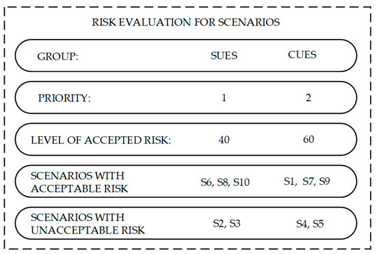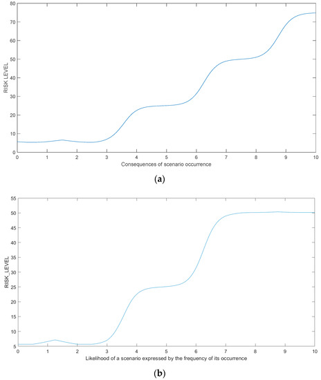 There is one detail in Equation (1) to be explained. “Likelihood” (P in the equation) does not mean the classical mathematical probability, defined in the range from 0 to 1, but the probability of a scenario, expressed by the frequency of its occurrence. The term “likelihood” means a linguistic probability ranging from 1 to 10. Only adopting such a range enables the correct analysis of the problem because the identical range was adopted for consequences of scenario occurrence.