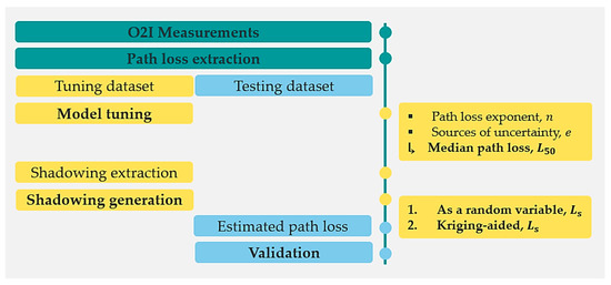 The overall methodology for both SS and OS channel modelling links is illustrated in Figure 4 and described as follows. As a first step, from the resulting O2I measurements, SS and OS NLOS links, the path loss is extracted in dB as a classical link budget: